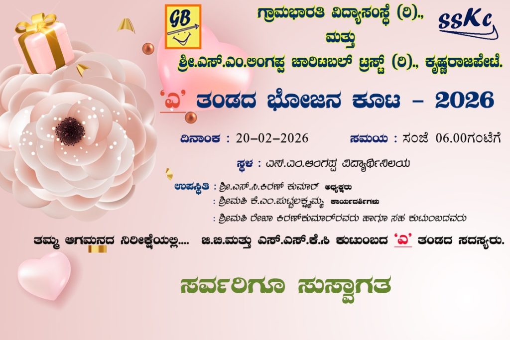 ನವೆಂಬರ್ 1, 2025 ರಂದು ಗ್ರಾಮಭಾರತಿ ವಿದ್ಯಾಸಂಸ್ಥೆ ಹಾಗೂ ಎಸ್.ಎಂ.ಲಿಂಗಪ್ಪ ಚಾರಿಟೇಬಲ್ ಟ್ರಸ್ಟ್ ವತಿಯಿಂದ 70ನೇ ಕನ್ನಡ ರಾಜ್ಯೋತ್ಸವವನ್ನು ಸಂಸ್ಥೆಯ ಆವರಣದಲ್ಲಿ ಆಚರಿಸಲಾಯಿತು.